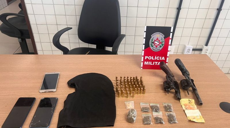 A Polícia Militar frustrou um ataque a tiros que seria realizado por três adolescentes na manhã desta terça-feira (9/12), no bairro de Gramame, zona sul de João Pessoa. O trio foi apreendido no conjunto Gervásio Maia, no momento em que se preparava para agir no residencial Colinas de Gramame. Com eles, policiais do 5º Batalhão encontraram duas armas de fogo, munições e drogas.