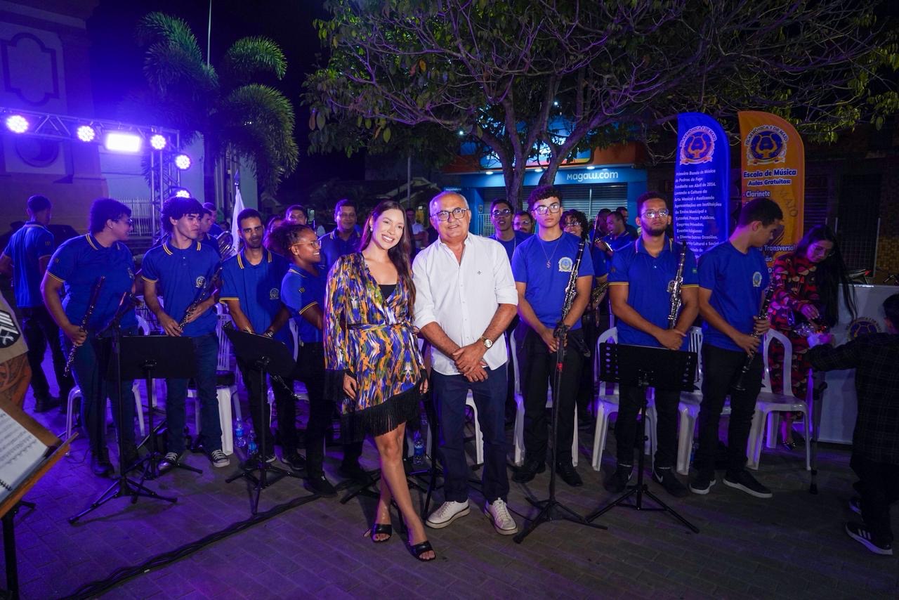 A Filarmônica 5 de Maio, prata da casa, abriu o evento mostrando o talento e a tradição musical que marcam sua trajetória. Na sequência, a Banda da PMPB — que há anos não se apresentava em Pedras de Fogo — emocionou os presentes com um repertório variado, que passeou por clássicos, temas populares e arranjos de canções consagradas.