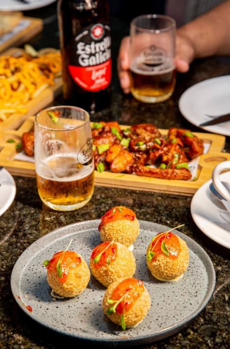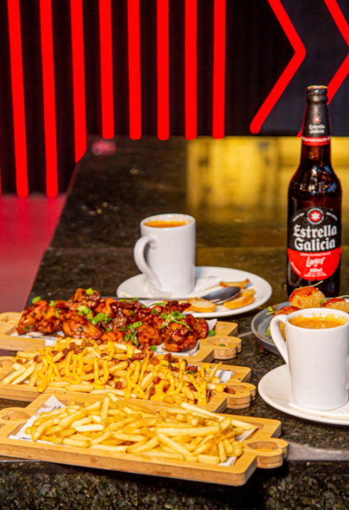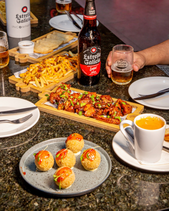 O espaço do bar no piso térreo é ideal para apreciar os petiscos do rodízio em uma atmosfera descontraída e agradável. Entre as opções de petiscos estão o frango à passarinho, caldinho de peixe, croquete de linguiça, batata frita, com ou sem cheddar e bacon, e pastel de salmão. Já para beber, a Estrella Galícia de 600ml é a pedida da noite, bem como refrigerantes e água.