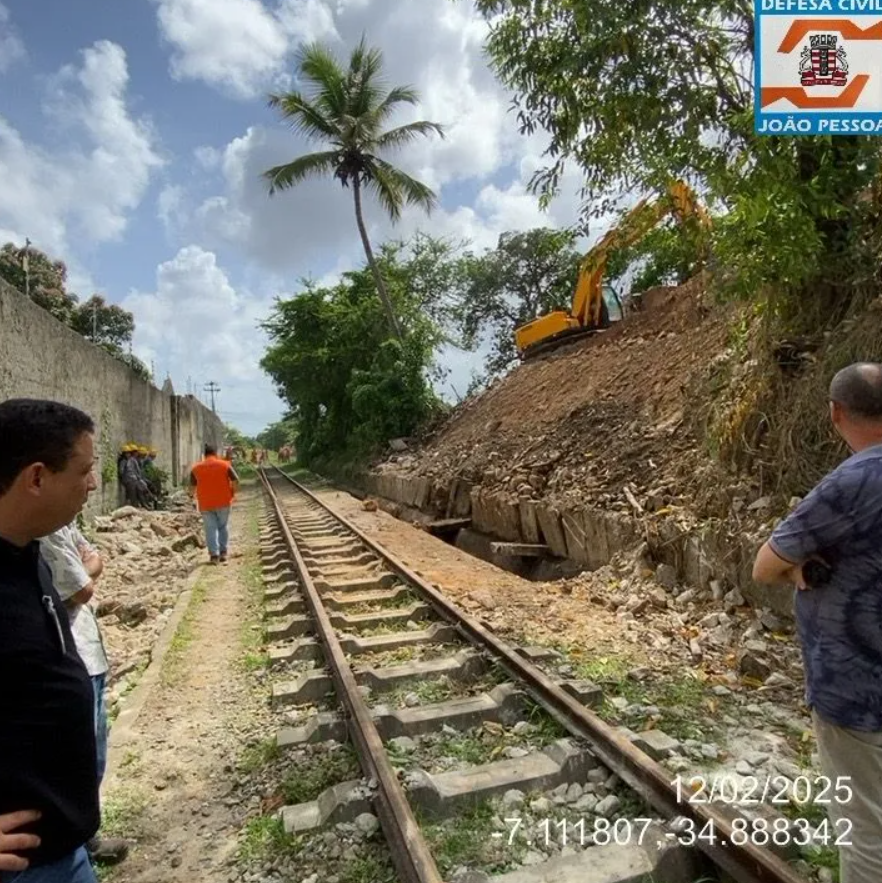 Após vistoria nesta quarta-feira (12), a Coordenadoria Municipal de Proteção e Defesa Civil (Compdec-JP) decidiu manter a interdição do trecho da linha férrea entre as estações de João Pessoa e Mandacaru, onde houve um pequeno deslizamento de terra sobre os trilhos na última quinta-feira (6). Segundo a prefeitura, a decisão é iminentemente técnica e acordada junto à Superintendência da Companhia Brasileira de Trens Urbanos.