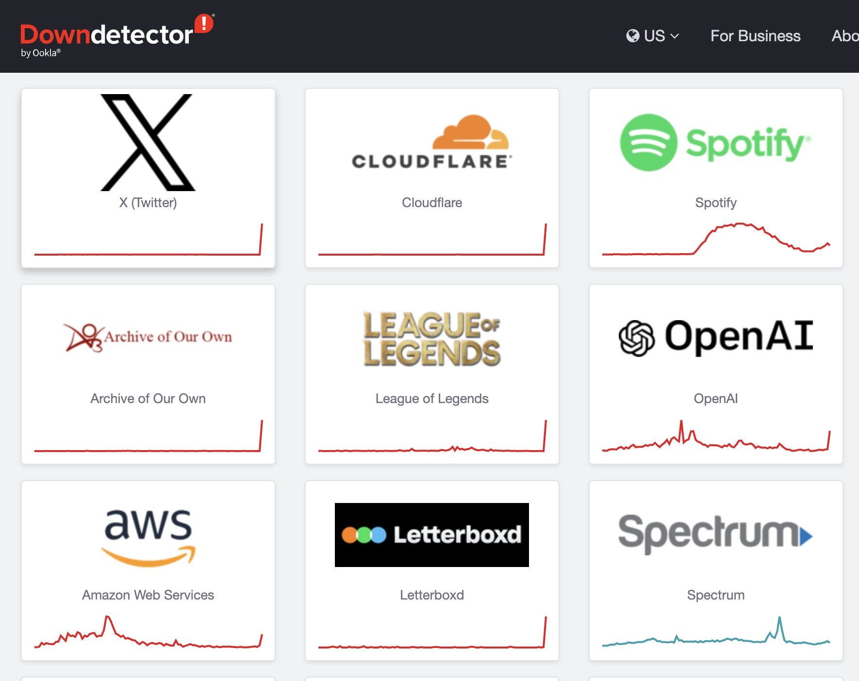 De acordo com o Down Detector, que monitora o status de serviços online, os problemas começaram por volta das 08h50 (horário de Brasília). A queda atingiu serviços como X (antigo Twitter), ChatGPT, Amazon e Canva.