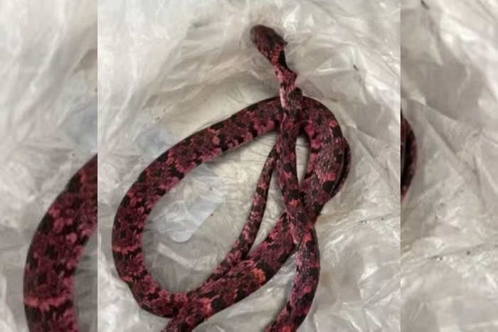 Imagens registradas no local mostram que o réptil estava com a cabeça cortada, indicando que possivelmente o homem a arrancou antes de ingeri-la, já morta.