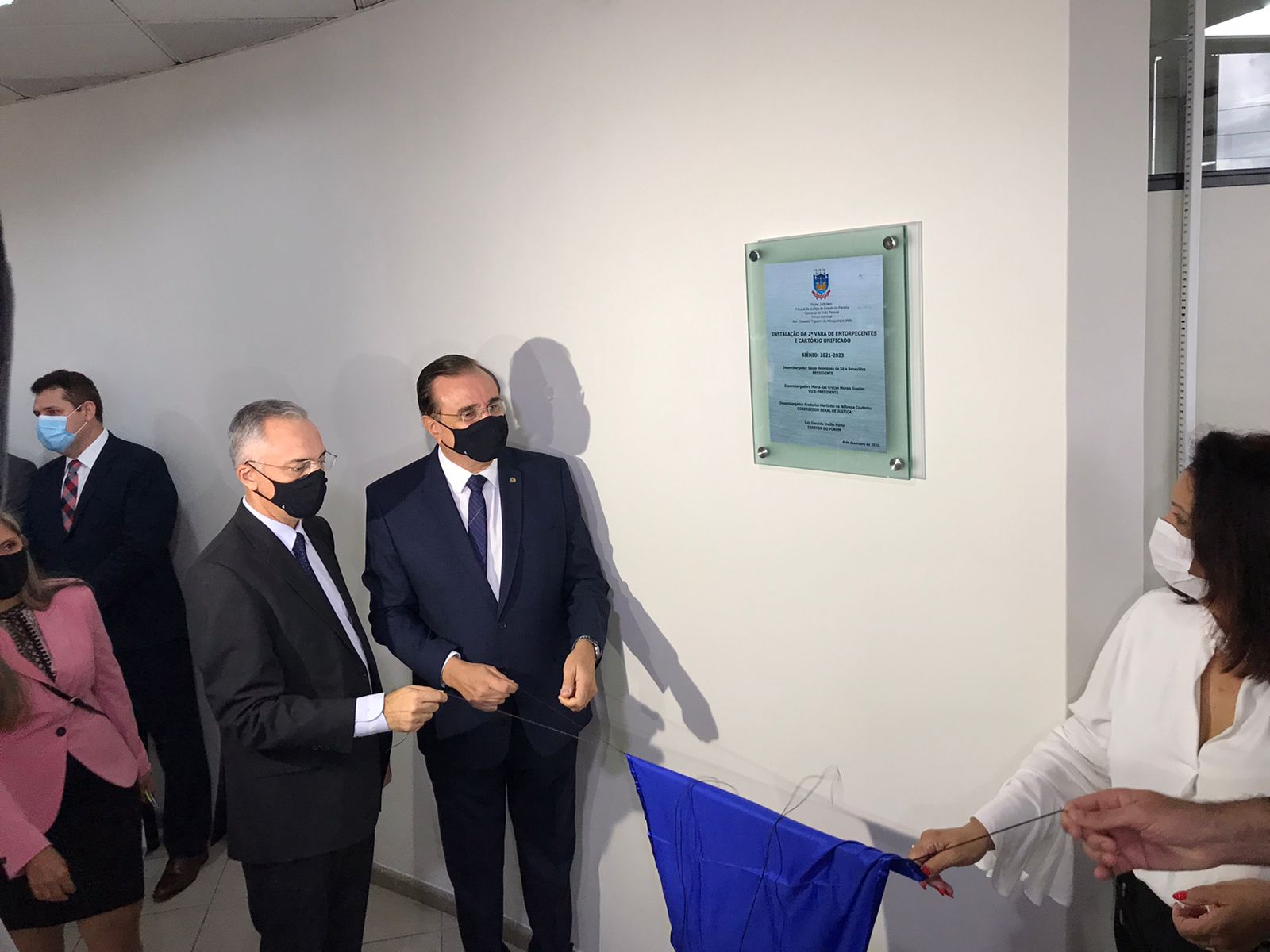 Com o objetivo de acelerar os processos de tráfico de substâncias ilícitas, o Presidente do Tribunal de Justiça da Paraíba, Desembargador Saulo Henriques de Sá e Benevides, e o diretor do Fórum Criminal da Capital, juiz Geraldo Emílio Porto, participaram da cerimônia de instalação da a 2ª Vara de Entorpecentes e do Cartório Unificado da 1ª e 2ª Varas de Entorpecentes.
