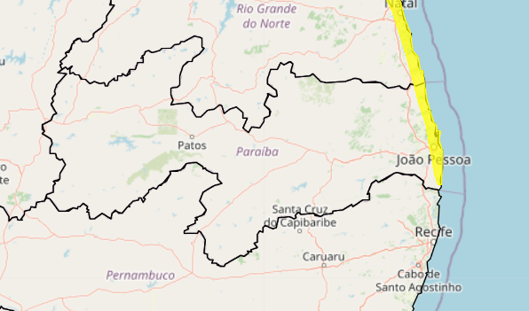 Treze cidades da região da Mata paraibana estão sob alerta amarelo por perigo potencial de chuvas intensas. O aviso foi emitido pelo Instituto Nacional de Meteorologia (Inmet) e é válido até esta quinta-feira (27/3).