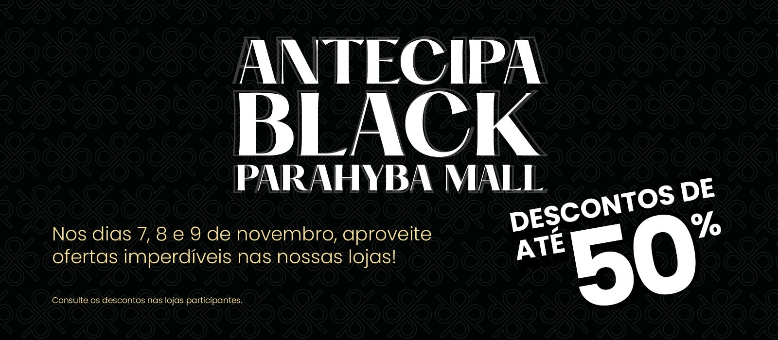 O Parahyba Mall se prepara para um fim de semana de grandes oportunidades com o Antecipa Black, que acontece nos dias 7, 8 e 9 de novembro, no bairro do Bessa, em João Pessoa. A ação oferece descontos de até 50% em diversas lojas, serviços e na praça de alimentação, antecipando o clima da Black Friday 2025, marcada para o dia 28 de novembro.