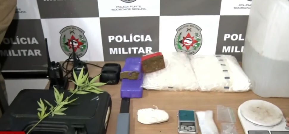 Entre os itens apreendidos, estavam balanças de precisão, saquinhos plásticos, pinos de armazenamento de drogas, maconha pronta para comercialização e até uma substância similar ao Loló, um tipo de entorpecente conhecido na região.