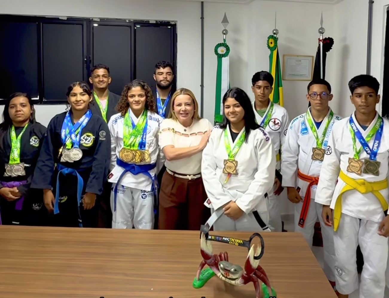 A prefeita de Bayeux, Tacyanna Leitão (PSB) recebeu jovens medalhistas que se destacaram no estado da Bahia. Durante o encontro, a gestora parabenizou os atletas pelo empenho, dedicação e pelas conquistas que levaram o nome do município ao pódio.