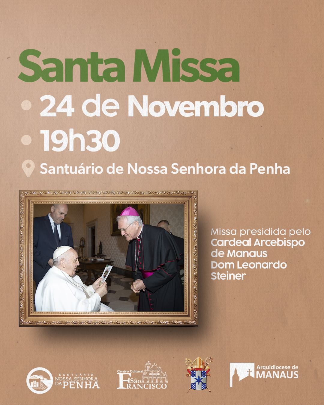 Pela noite, às 19h30, Dom Leonardo preside uma santa missa no Santuário de Nossa Senhora da Penha.