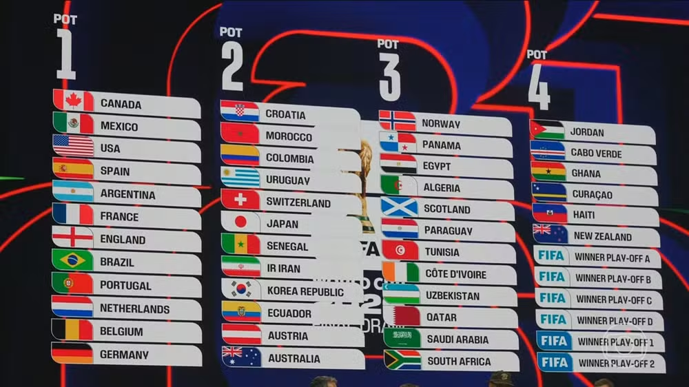 Os grupos da Copa do Mundo de 2026 serão sorteados na sexta-feira (5). O evento acontece em Washington (Estados Unidos), às 14h (horário de Brasília).