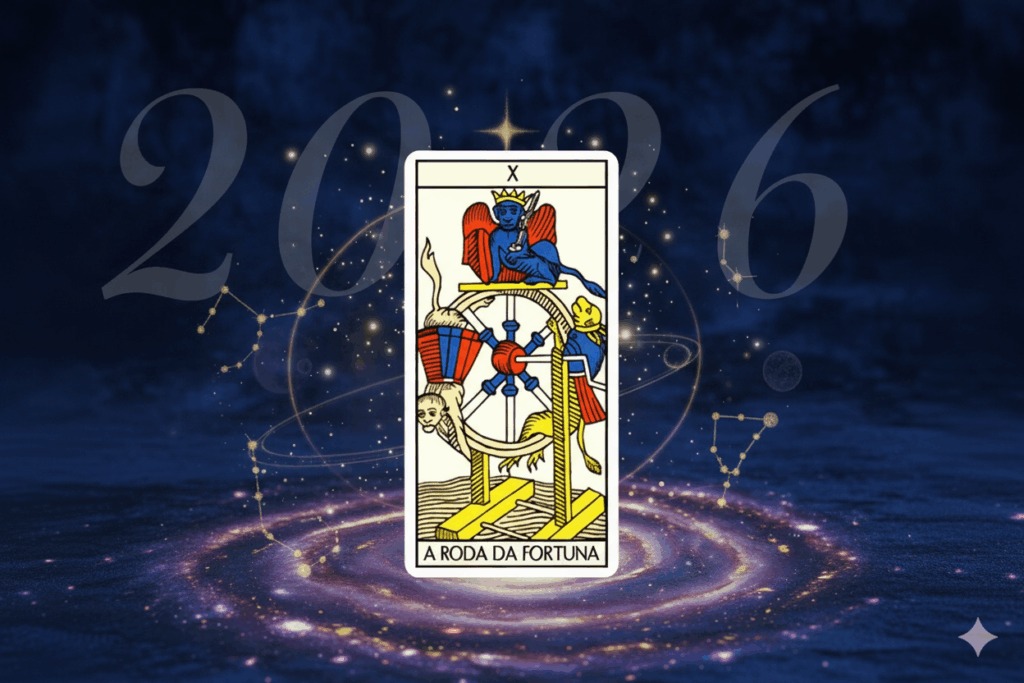 A carta Roda da Fortuna será a regente de 2026, segundo leituras do Tarot baseadas na numerologia. O Arcano 10 simboliza movimento, viradas inesperadas e ciclos que se encerram para dar lugar a novos começos, indicando que o próximo ano tende a ser marcado por transformações intensas tanto no plano individual quanto coletivo.