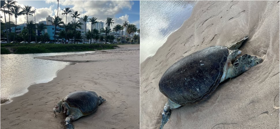 Uma tartaruga marinha foi encontrada morta na manhã desta quarta-feira (26) na praia de Cabo Branco, em João Pessoa.