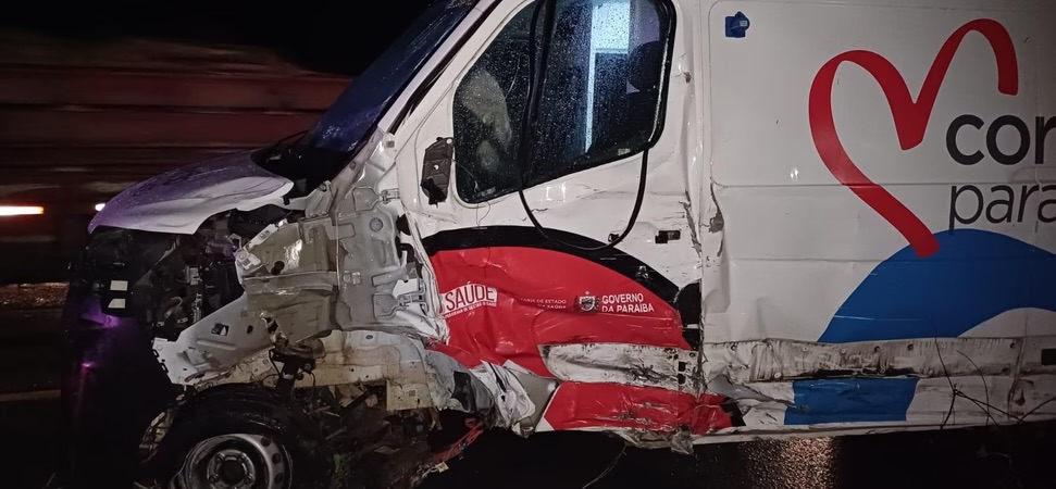 Na sequência, atentar desviar, o condutor perdeu o controle, invadiu a faixa contrária e bateu de frente com uma ambulância do Programa Coração Paraibano.