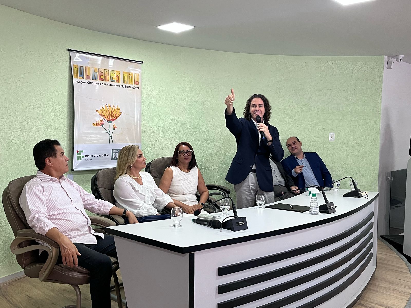O líder da Maioria no Senado Federal, Veneziano Vital do Rêgo (MDB-PB) participou nesta sexta-feira (11) da assinatura da ordem de serviço para a construção do Instituto Federal de Educação da Paraíba – IFPB da cidade de Queimadas. A solenidade foi no plenário da Câmara Municipal e contou com a participação de autoridades, a exemplo do suplente de senador André Amaral, do deputado federal Wilson Santiago, da prefeita Delúzia Barros, da reitora do IFPB Mary Roberta, além da população em geral.